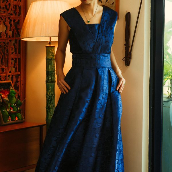 The iconic damask of Chinese fabric is also deployed as the base fabric for the embroidery, giving it an added layer of texture.